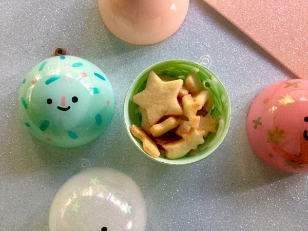Viene con una bolsita con 24 mini galletas de manteca caseras y confetti sorpresa cuando la abrís.